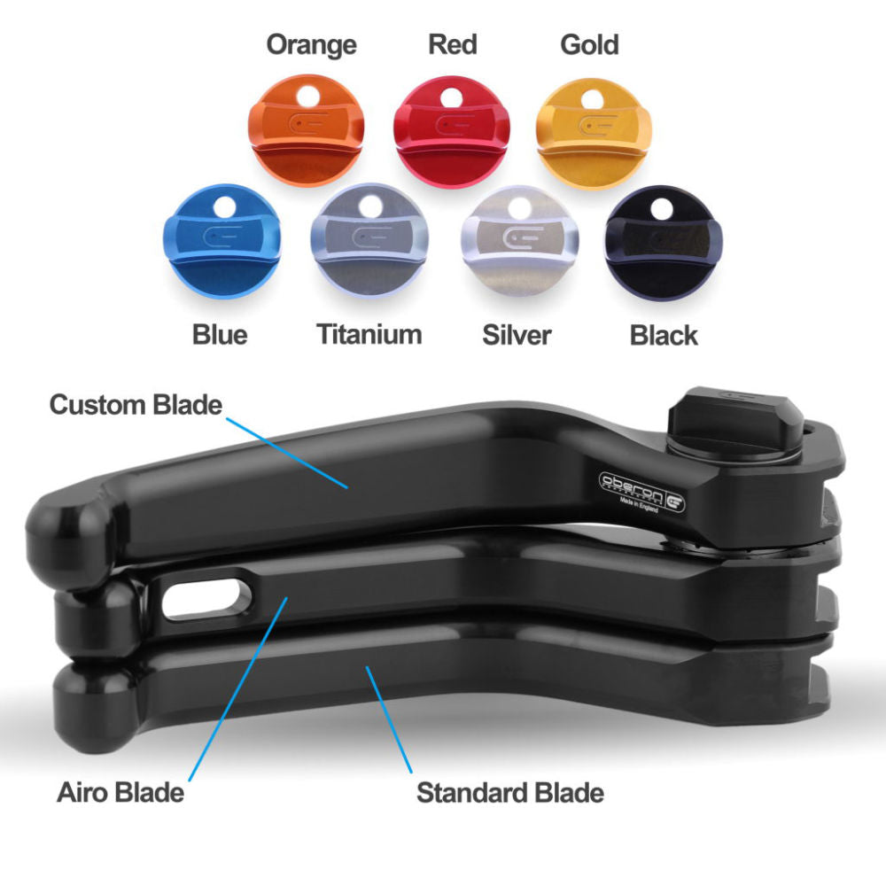 BMW adjustable clutch motorcycle levers by Oberon Performance. Adjustment is achieved with fingertip control in either adjuster direction. The eight adjustments give adjustment up to 30mm (1 1/8") of lever travel. Our unique RADIAL CAM ® design achieves this extraordinary range with ease. This is mainly due to both the close tolerance design and the high precision quality roller, around which the cam operates locating each position with a comforting 'click'. Each lever is despatched fully assembled in the style and colour of your choice ready for use. Oberon Performance supplies a full specification sheet including part numbers with all levers. The cams in the levers have been hard anodised for longevity and reliability, sufficiently lubricated on assembly for smooth adjustment transition. Available in 3 styles, Standard, AirO and Custom.